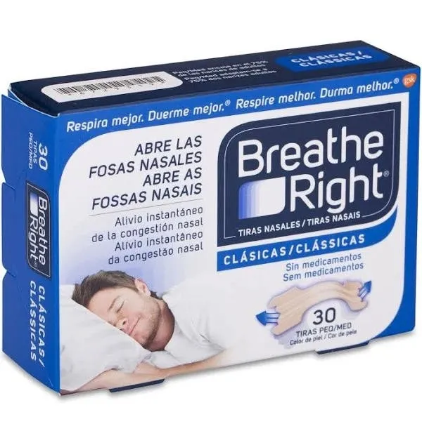 Breathe Right Clasicas – Tira Adh Nasal (30 Unidades Talla Pequeña-Mediana)