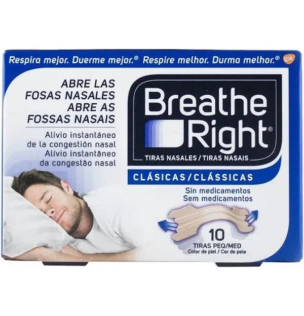 Breathe Right Clasicas – Tira Adh Nasal (10 Unidades Talla Pequeña-Mediana)